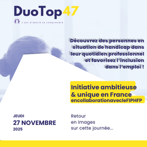 Le CDG 47 poursuit son engagement visant à favoriser l’inclusion dans le département et faire tomber les préjugés sur le handicap, Il est en collaboration avec le FIPHFP, est fier de proposer une initiative ambitieuse en France : le DuoTop47.